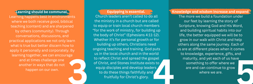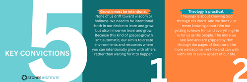 The Stones Institute exists to help the local church fulfill its call to teach sound doctrine (Titus 1:9), make and mature disciples (Matthew 28:20), develop leaders (2 Timothy 2:2), and equip its members to build up Christ's Body and spread the gospel (Ephesians 4:11-16).